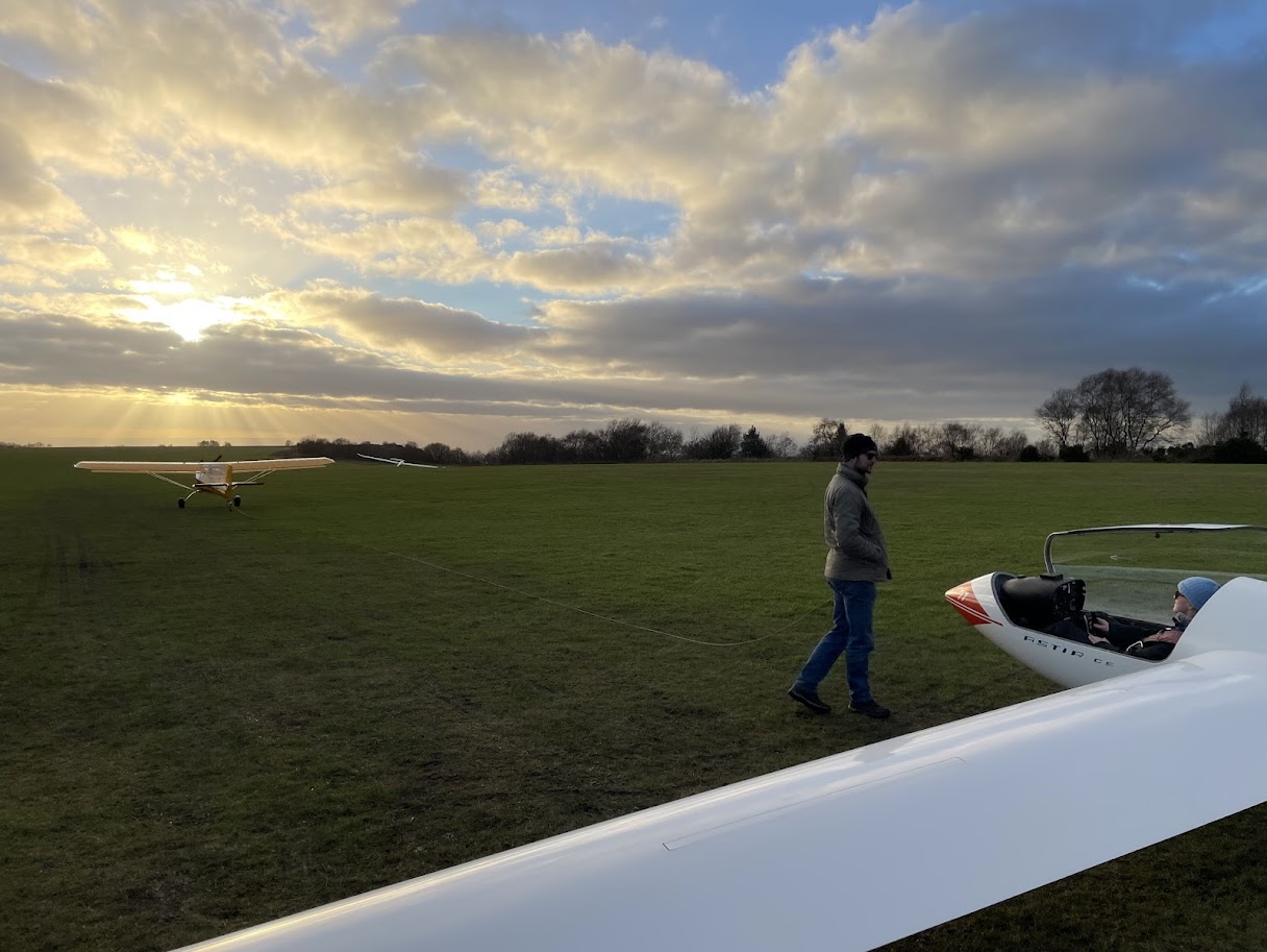 Cambridge is a place fond of traditions and, as a result, we could not help but engage in our annual tradition of gathering some CUGC members and an instructor and shipping them up north for ridge and wave soaring, as well as extensive canopy de-misting. December found a group of us packing our blankets and heaters and heading to the Yorkshire Gliding Club (YGC), aka the Sutton Bank airfield. Sutton Bank is a hill gliding site and one of the oldest UK gliding sites. It offers glider pilots used to the flatness of Cambridgeshire the opportunity to soar along its westerly ridge and potentially find some wave. While there is no water tower or Wimpole Estate to help us navigate, there is the famous Kilburn White Horse -a landmark one cannot possibly miss. Its fleet includes the most wonderful DG1000 (that the author instantly fell in love with), which we had the pleasure to fly.