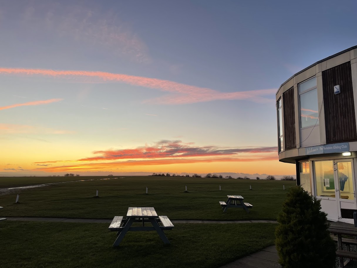 Friday was our last full day at the club. At that point, we had enjoyed plenty of flights, delightful dinners in the clubhouse and at Thirsk, and each of us had stacked a few more hours in our logbooks. Unfortunately, Friday was not particularly favourable. We decided to open the hangar in the afternoon, and only Kate and Tereza managed to get one flight each until we started dealing with too much canopy misting to carry on launching. Peter and Chara got to do some flying in the TMG to prevent FOMO. Chara was lucky enough to have a sunset flight, but barely enjoyed the view as she was focused on circuit practice. Thankfully, the ground crew captured some beautiful shots!